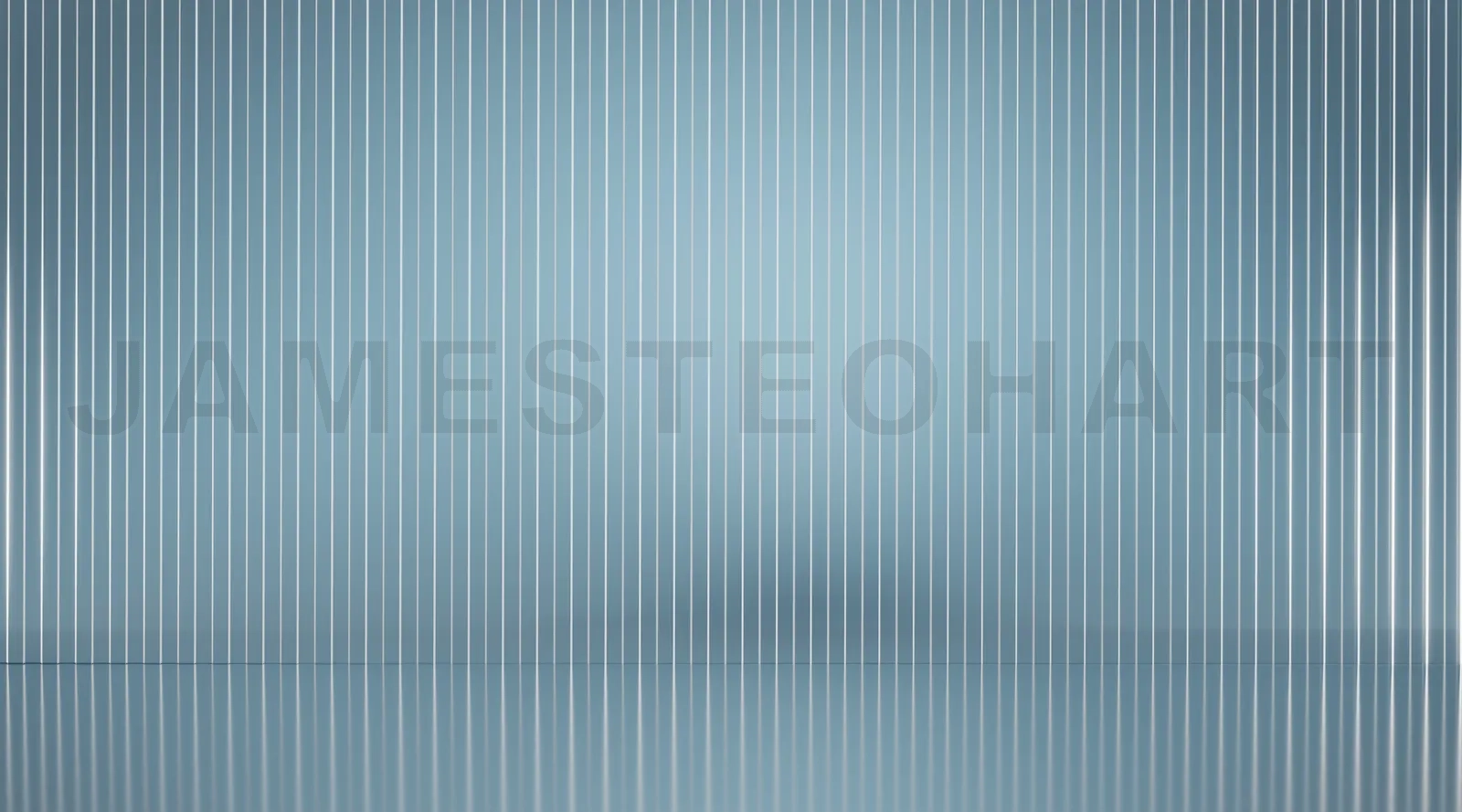 Empty blue room with vertical lines and floor reflection, creating a modern and minimalist space. 3D rendering