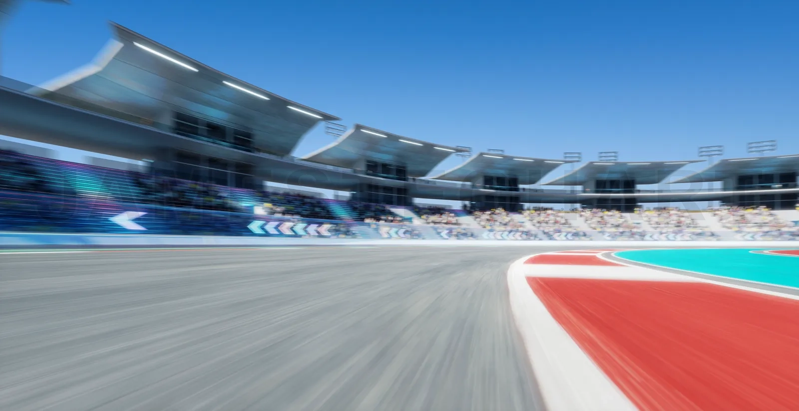 Moving racetrack with arrow neon light decoration. 3d rendering