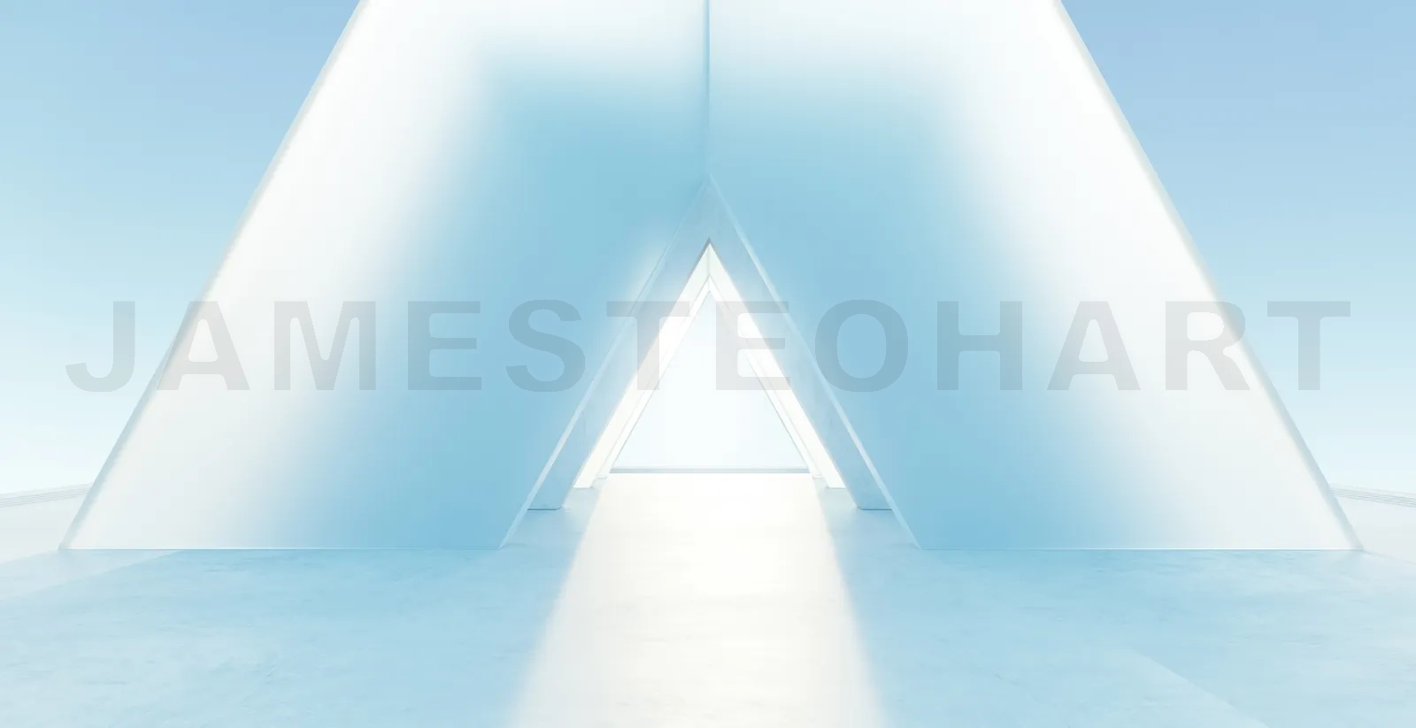 Sun shining through triangular shaped opening in modern glass architecture. 3d rendering