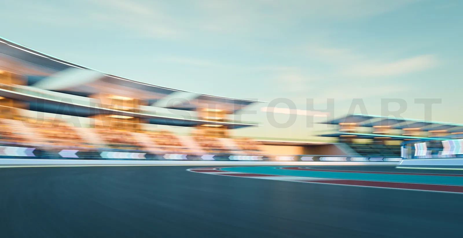 3d rendering racing concept of morning scene futuristic racetrack with neon sign light decoration