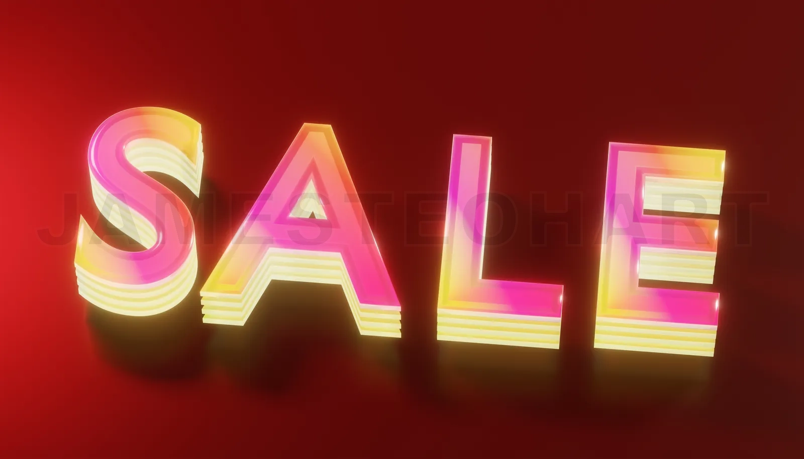 Layered and glowing sale sign on a red background, ideal for advertising campaigns and promotional materials. 3d rendering