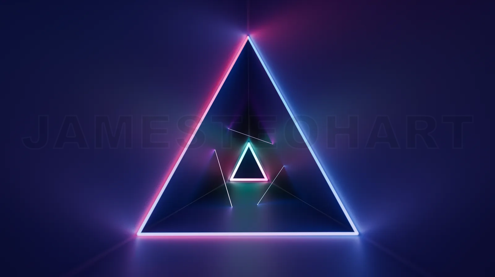 Abstract triangular shape background with glowing colorful triangular laser rays neon. 3d rendering