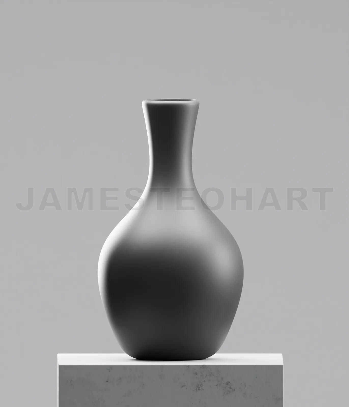 Black vase on cement table. Photorealistic 3D rendering