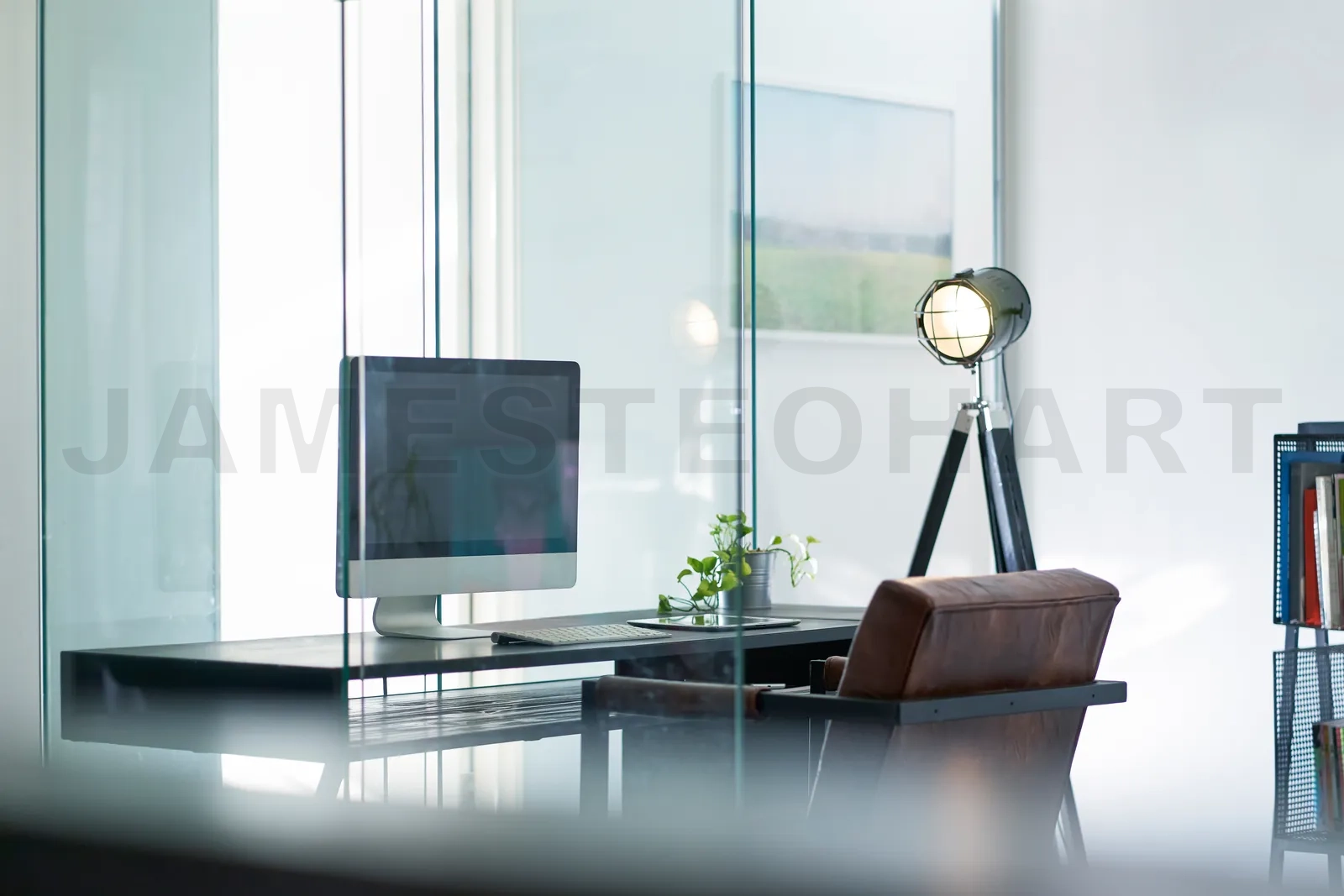 Blurred and defocused office workplace background , for commercial business ads using background .