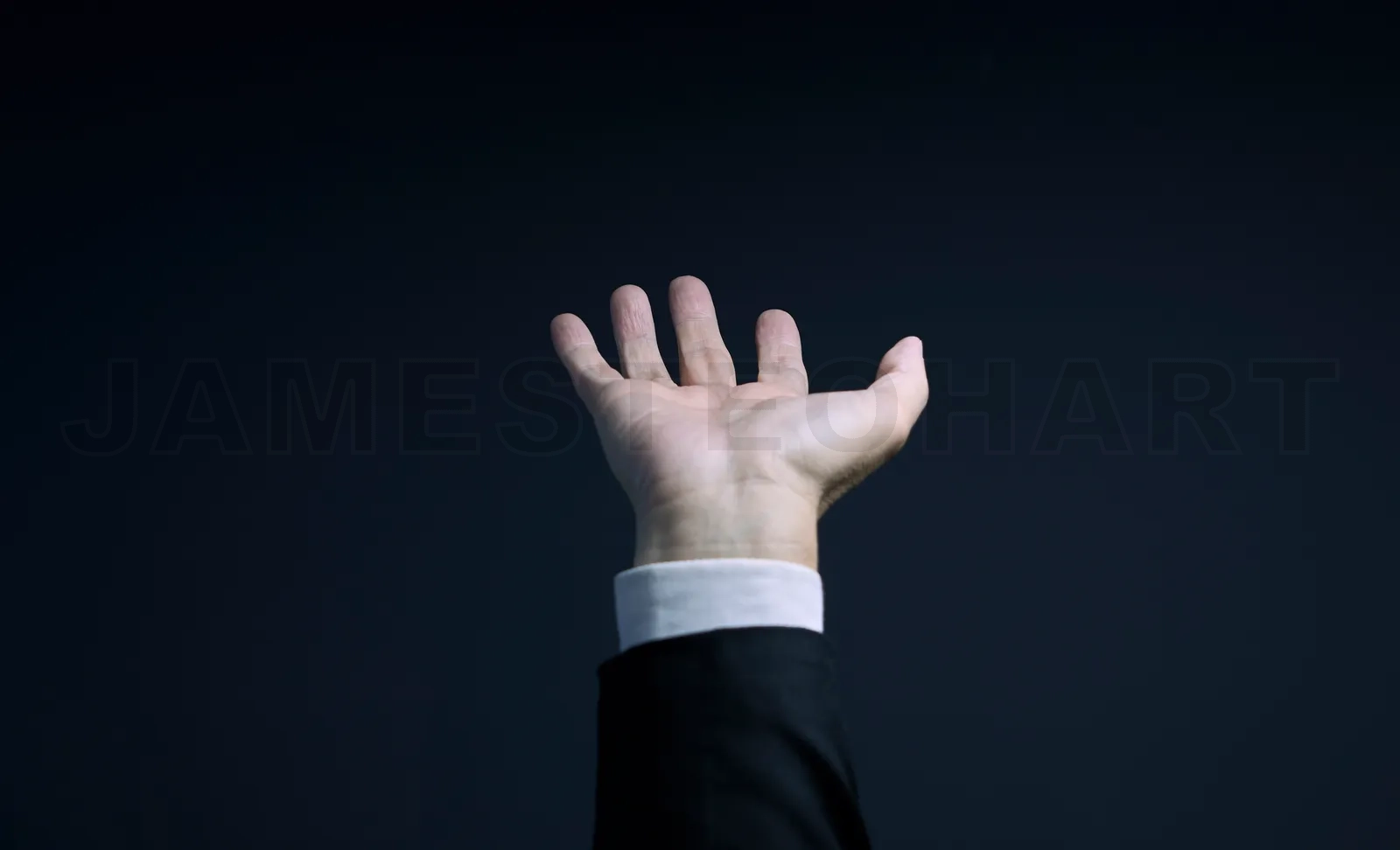 Hand reaching out, symbolizing hope, opportunity, or request, against a dark background