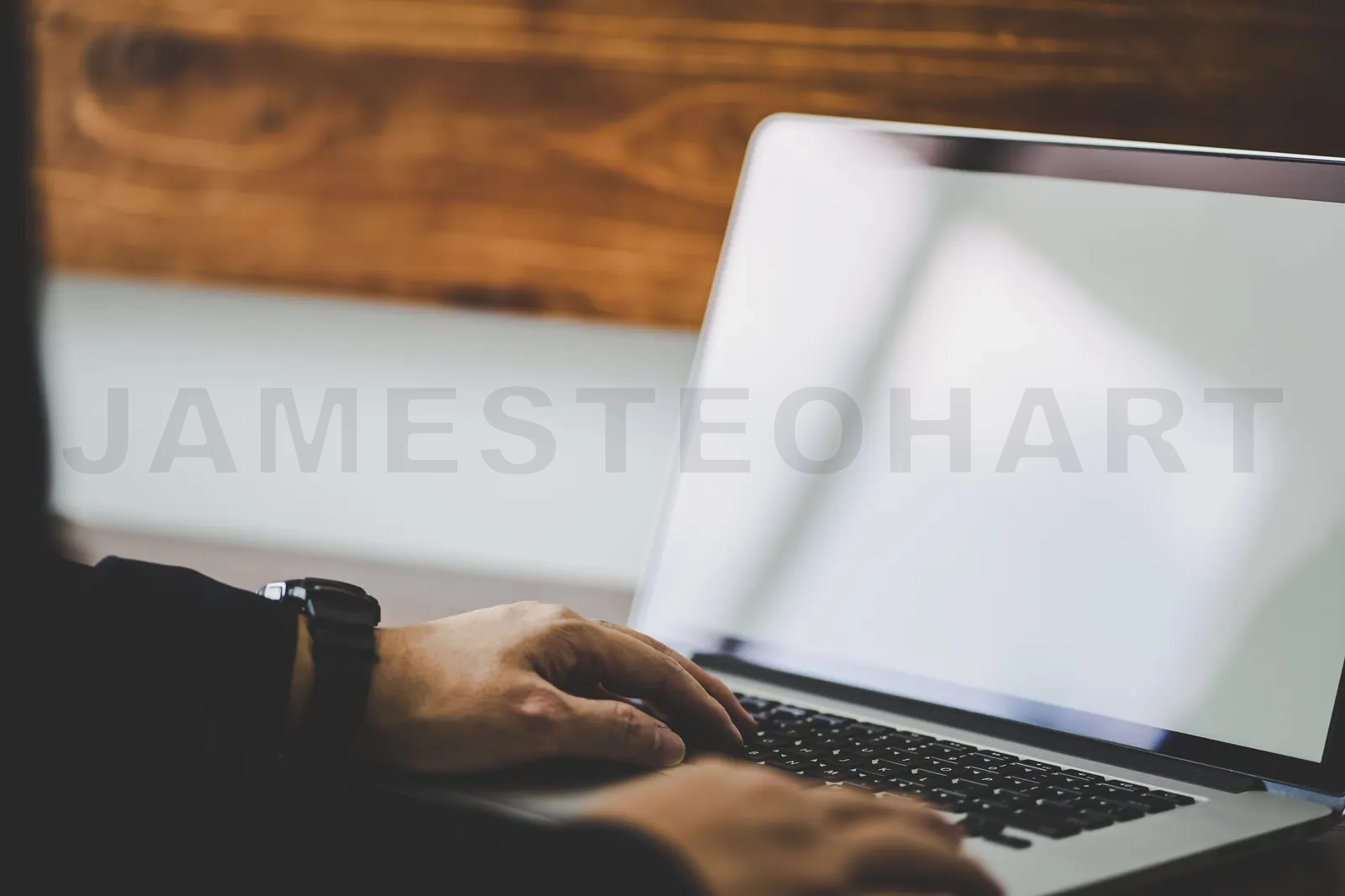 Closeup unknow hand using laptop, selective focusing .