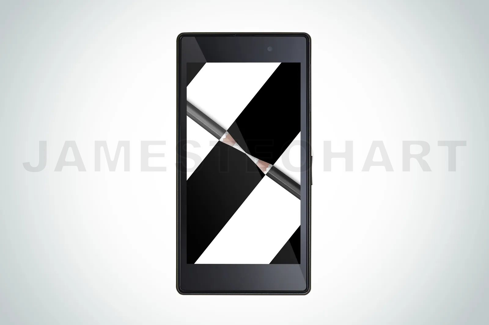 composition of pencils on modern mobile smart phone.