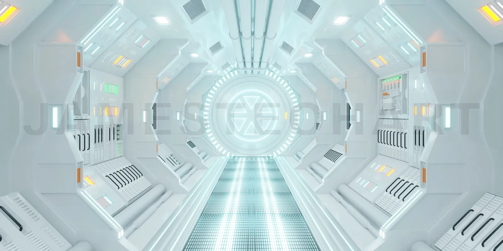 Corridor spaceship Interior. Scifi fiction concept. 3d rendering.