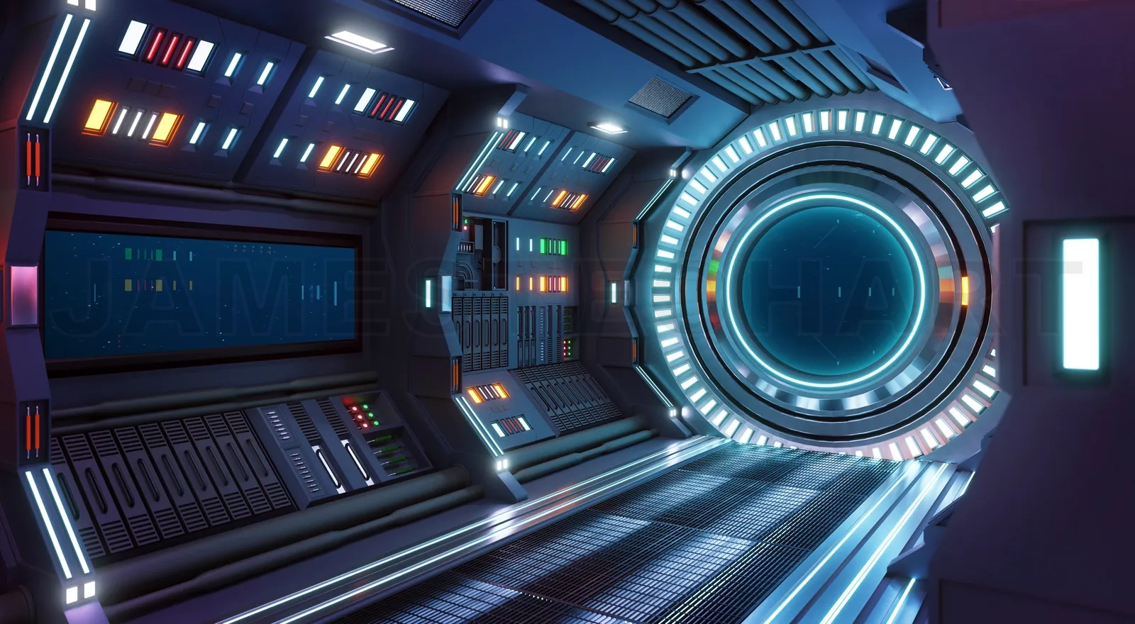 Corridor spaceship Interior. Scifi fiction concept. 3d rendering.