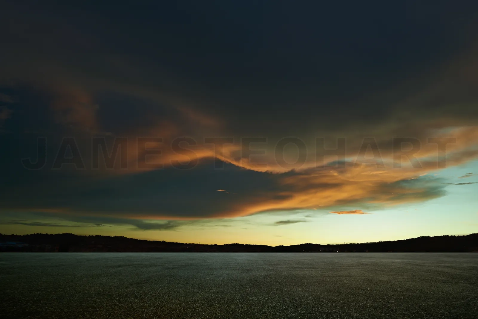 Empty asphalt floor with beautiful sunset sky