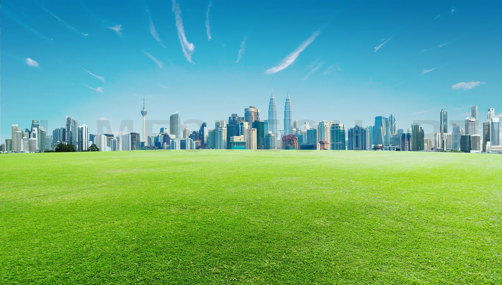 Green grass and downtown