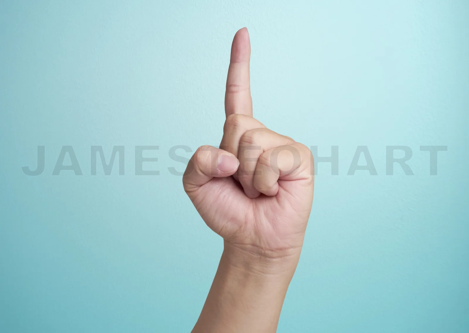 Man index finger isoalted on a blue background