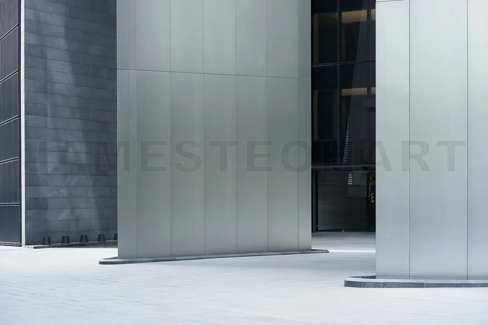 Contemporary building facade details featuring clean lines and geometric shapes in a minimalist style