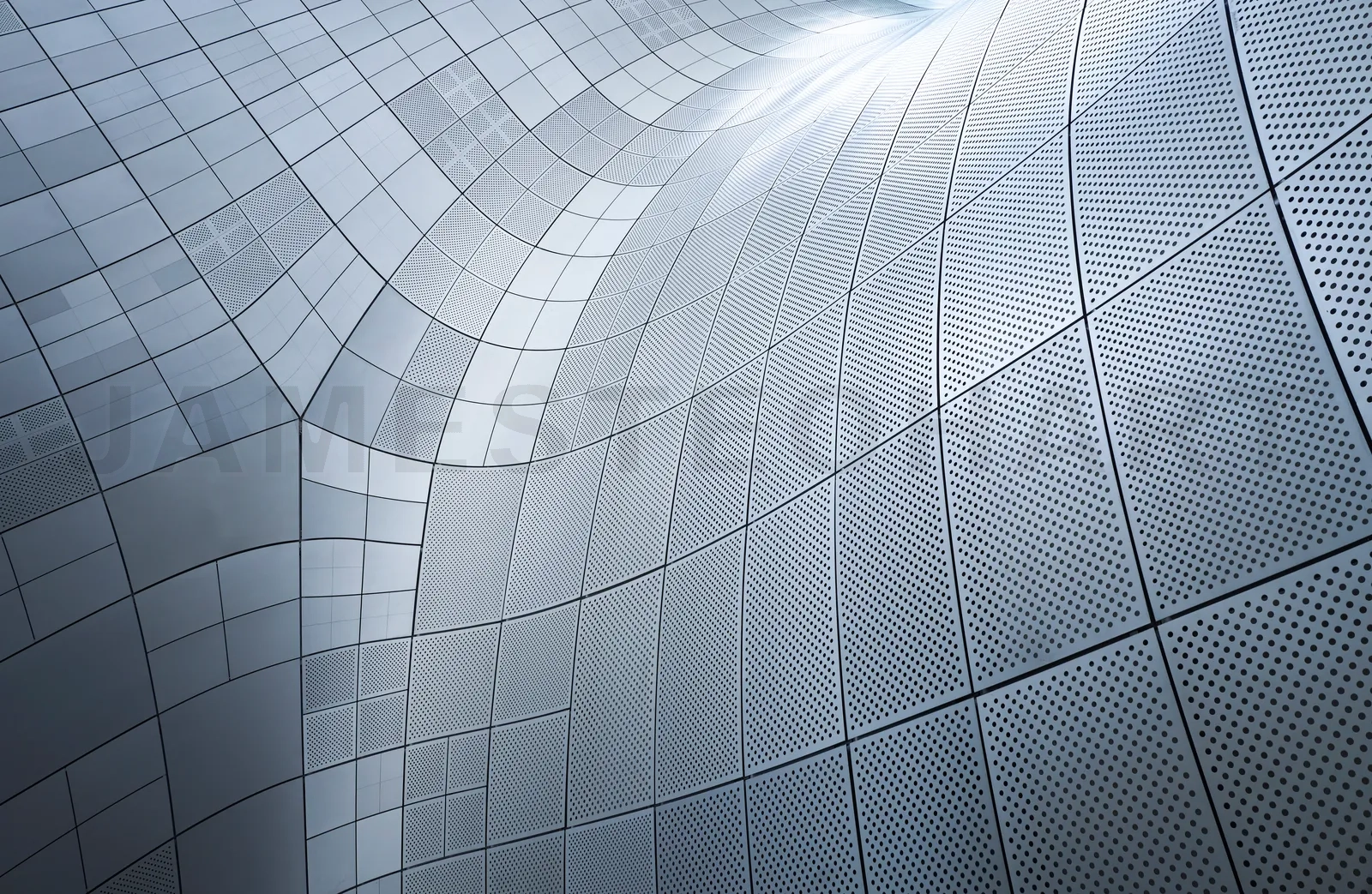 Architectural detail featuring a curved facade with metallic panels, highlighting modern design and construction techniques