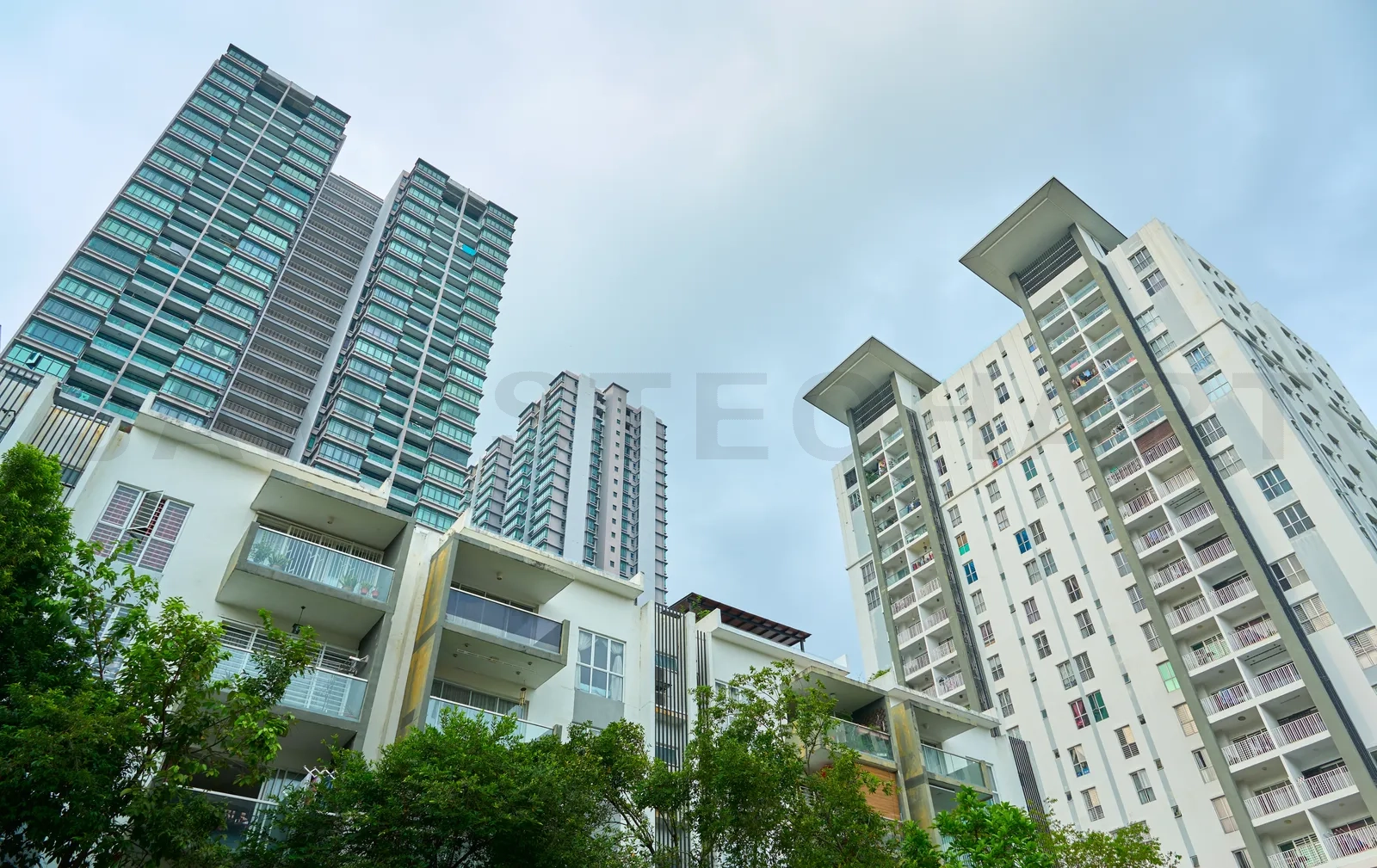 Modern residential buildings with balconies and large windows are reaching for the sky