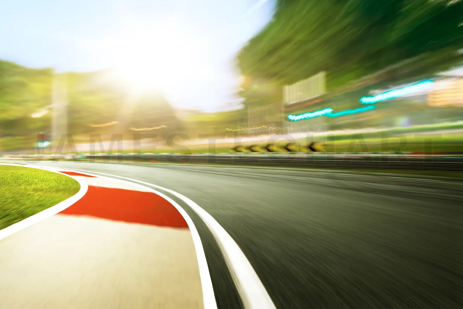 Motion blurred racetrack,sunset scene
