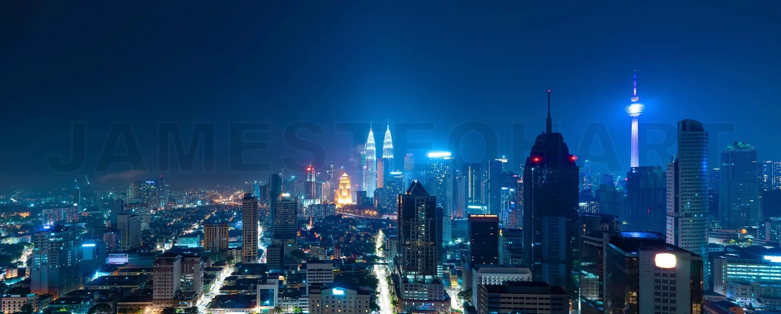 Panorama aerial view in the middle of Kuala Lumpur cityscape skyline .Night scene before sunrise , Malaysia .