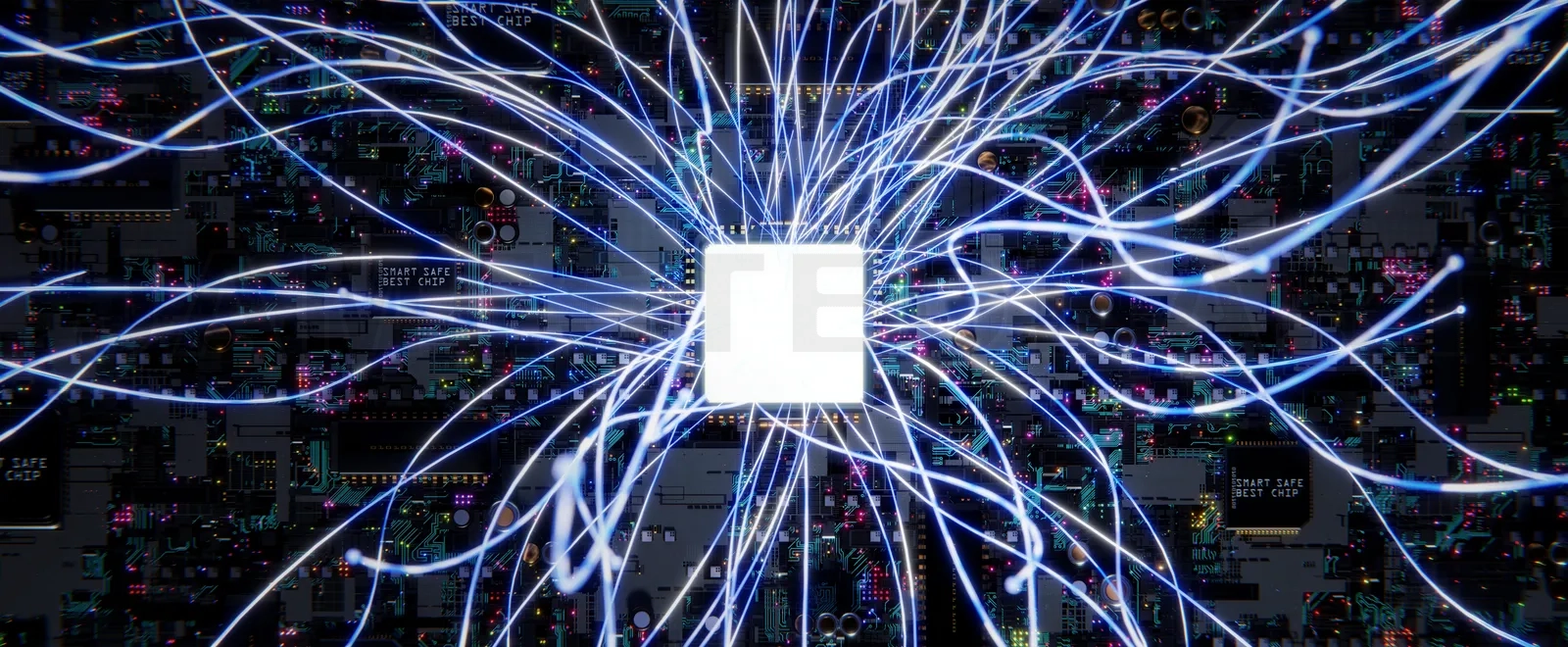 Smart technology circuit board with aesthetic Intricate wave line design , big data connection technology concept. 3d rendering