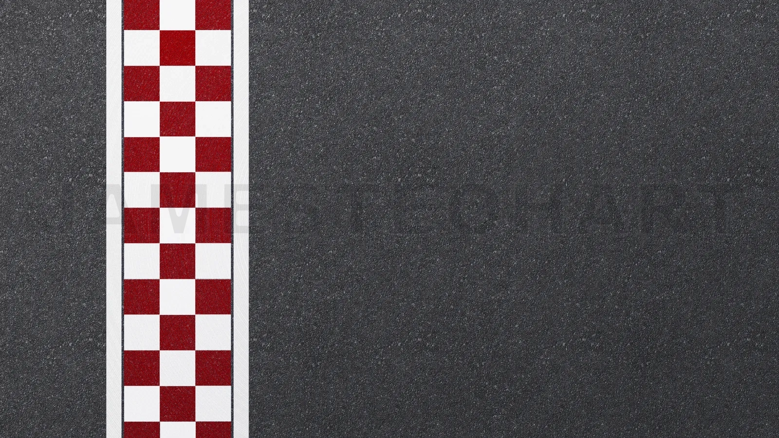 Top aerial view empty asphalt international race track with start and finish line. 3d rendering .