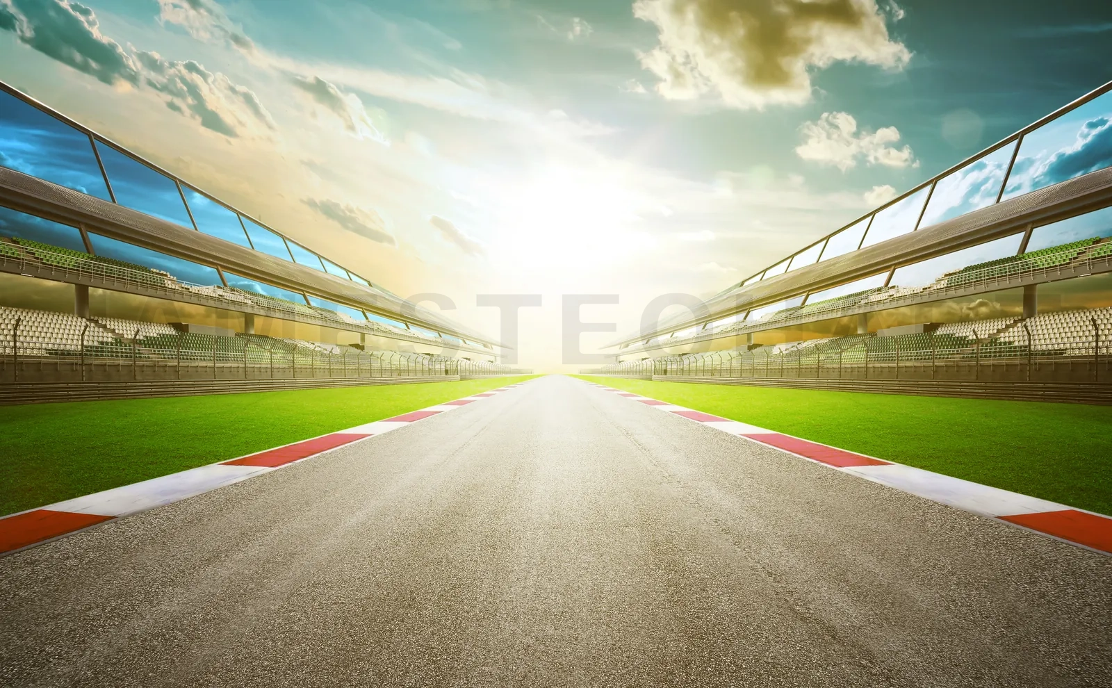 View of the infinity empty asphalt international race track, digital imaging recomposition montage background . evening scene .