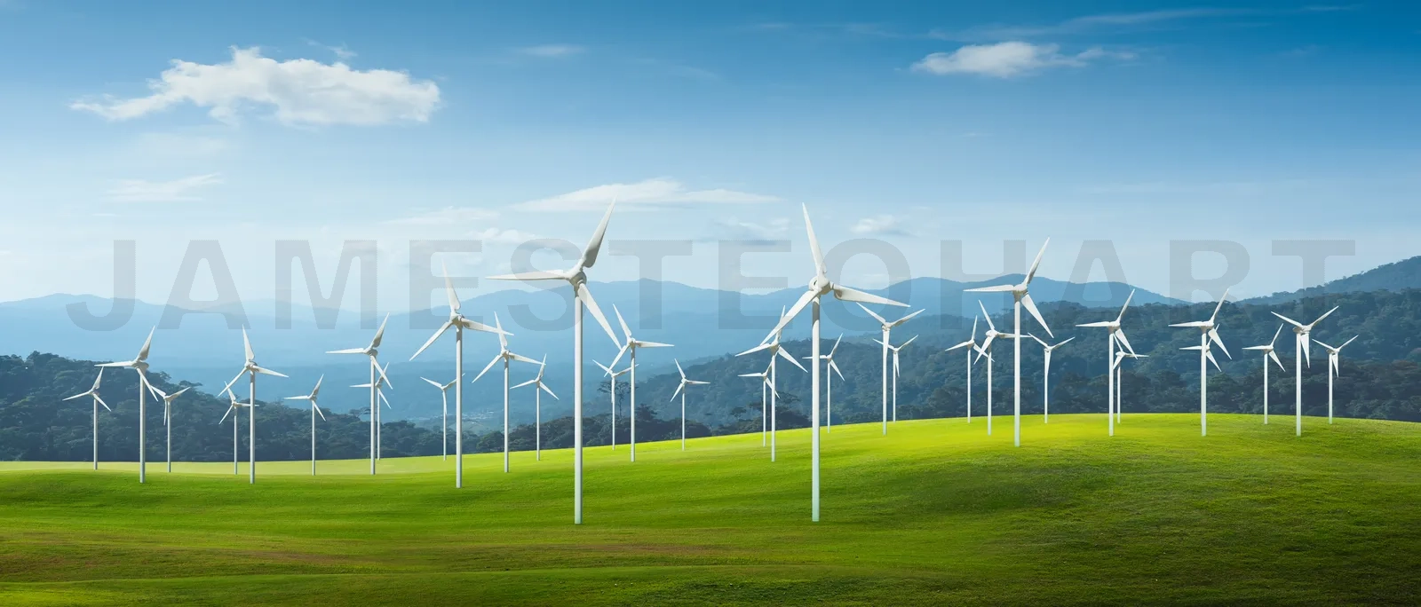 Wind turbines in a field with beautiful landscape. Sustainable, Ecological, Renewable power sources concept images