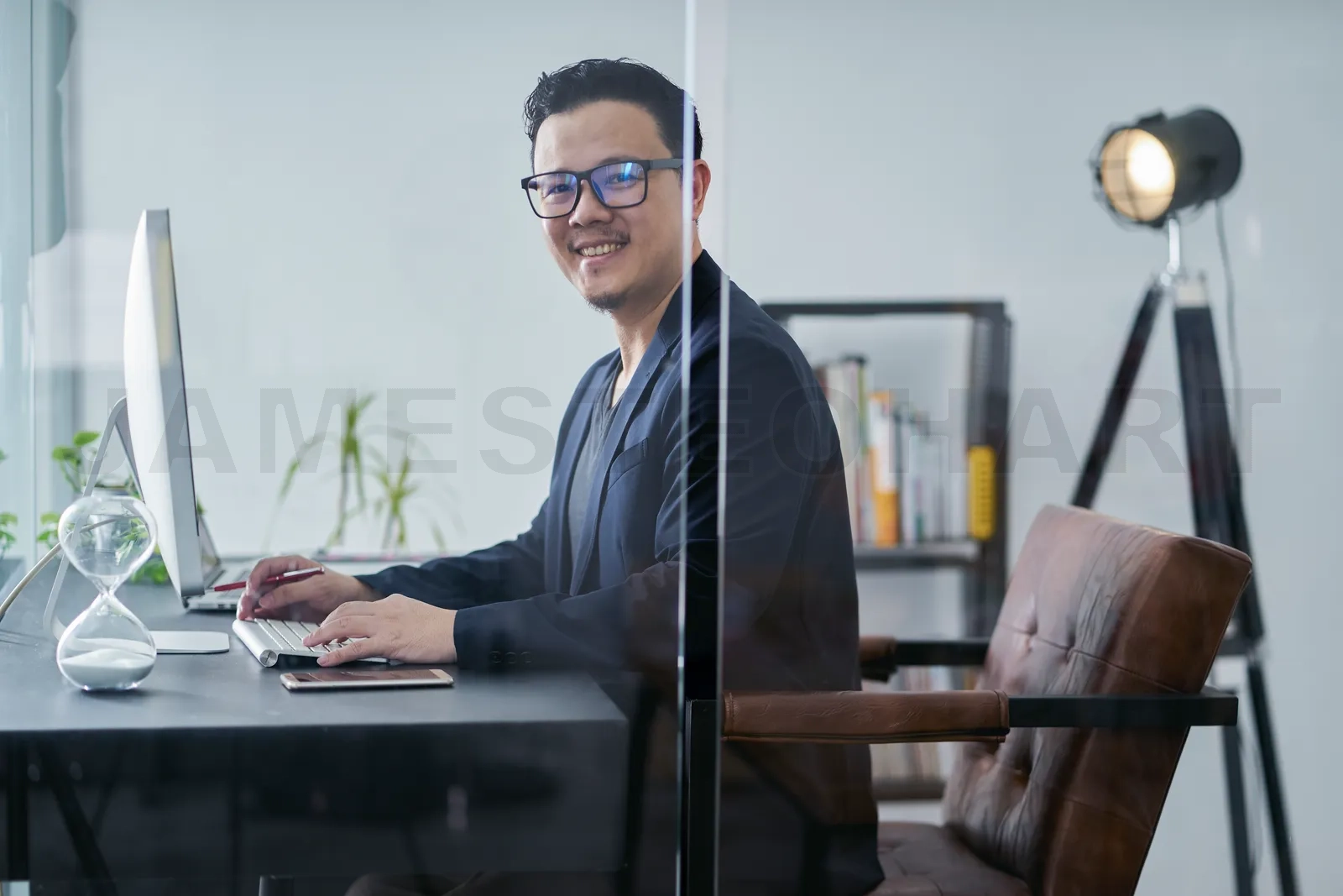 Young asian businessman smile at office